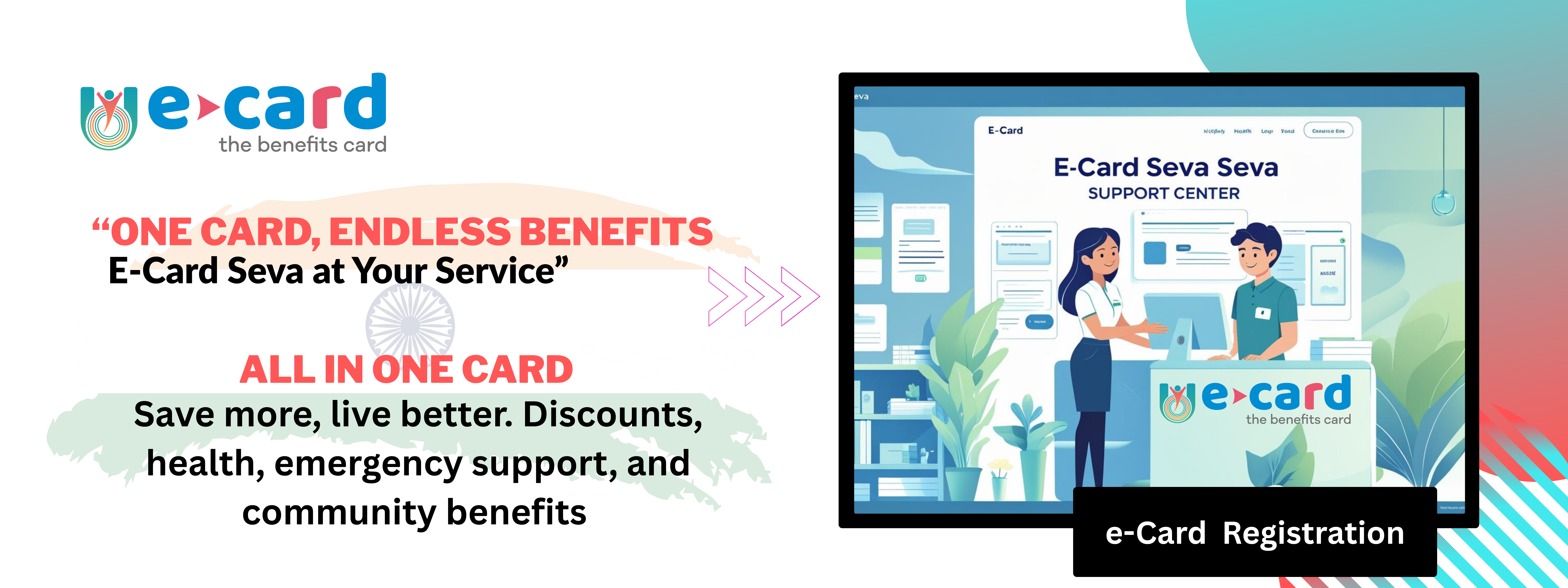 Empowering Every Sector with Smart ServicesECard Seva is a visionary initiative launched by Uonely Solution Private Limited, a governmentregistered private company, with the goal of bringing meaningful benefits and financial support to every Indian citizen. This multipurpose benefit card is specially designed to support common people, ensuring access to healthcare, education, savings, and social security&mdashall under one digital and physical platform. The ECard works both online and offline and can be used at hospitals, schools, colleges, malls, medical stores, and small businesses across the country. With Aadharbased registration, it provides secure and seamless services while promoting a cashless, supportive, and inclusive economy. Read More